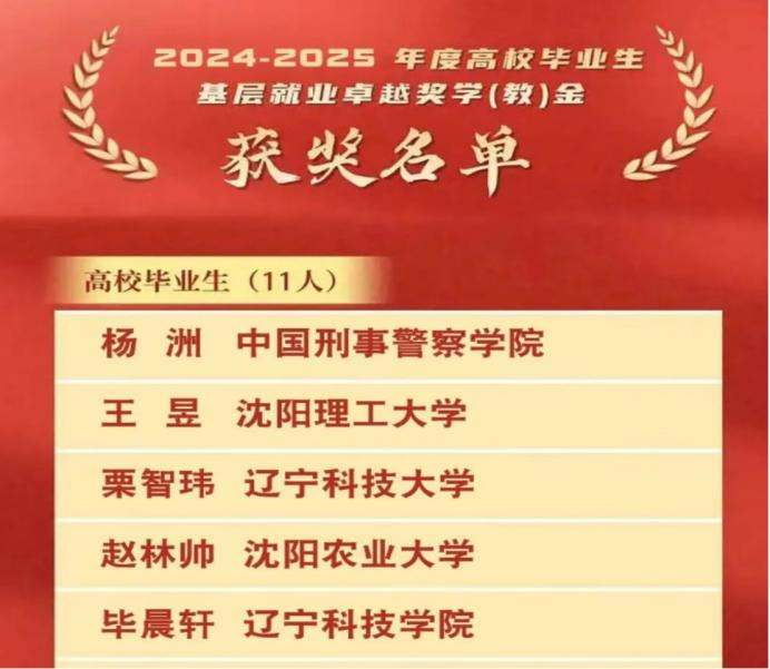 近日,2024—2025年度“高校毕业生基层就业卓越奖学金”获奖名单正式公布,经济与管理学院2017届档案学专业毕业生毕晨轩光荣上榜,成为辽宁省11名获此殊荣的毕业生代表之一,用八年基层深耕实践诠释了新时代青年的责任与担当。